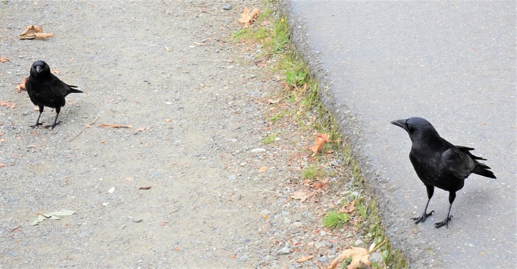 I thought ravens were bigger but it’s hard to tell them apart. Either way, I guess I’ll have to bring peanuts next time! π