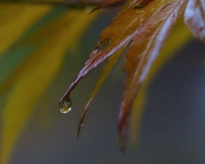 We’ve had stormy weather all week. But I was happy getting pictures of the raindrops on our tree, where the leaves are still hanging on.
