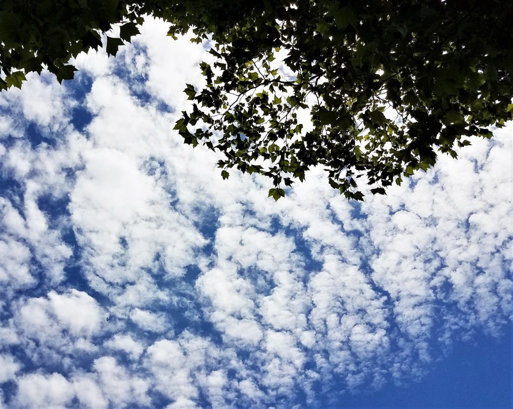Sometimes a tree holds up a cloud as this one did below – a fluffy ball supported by a twiggy stem to be plucked up and used by any giant nearby.