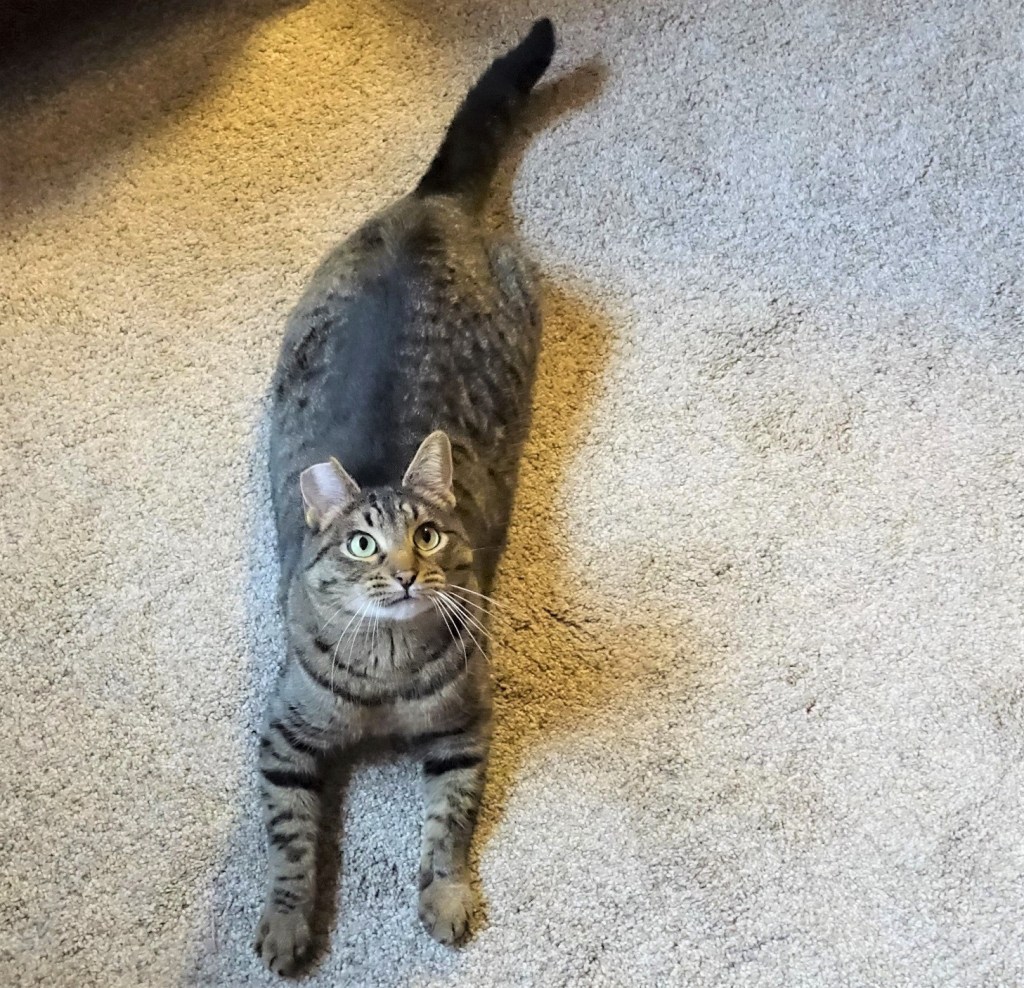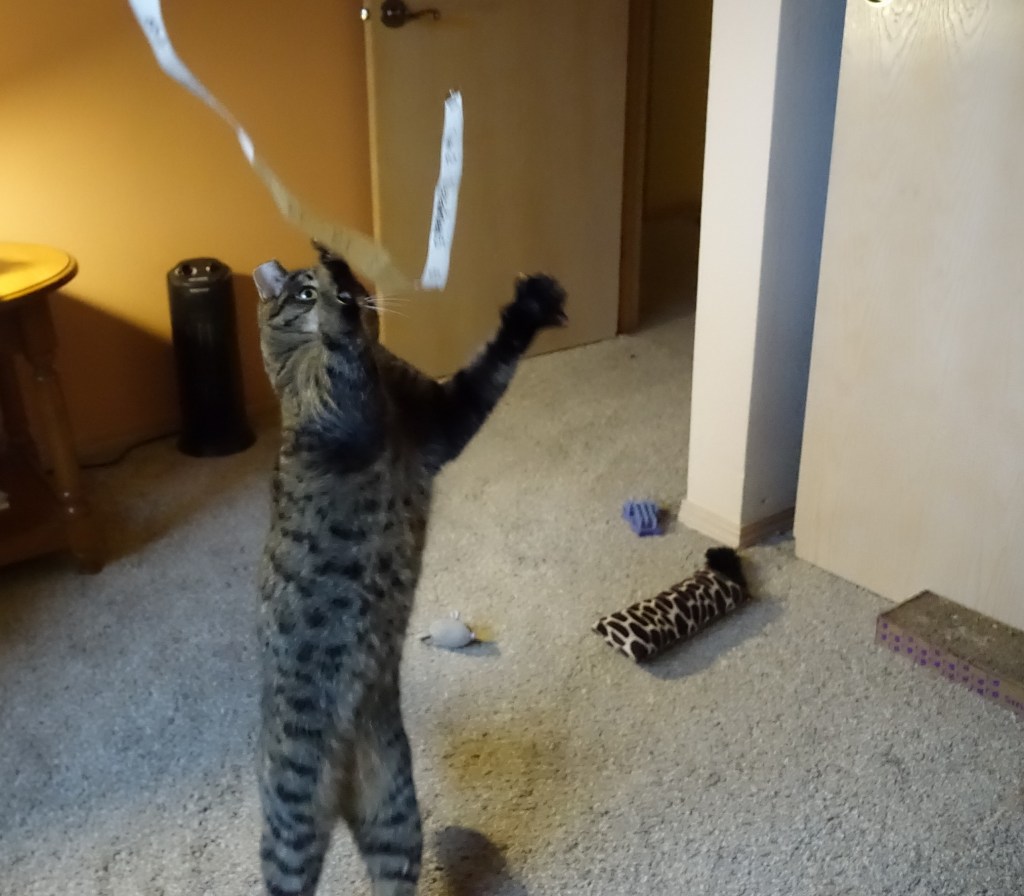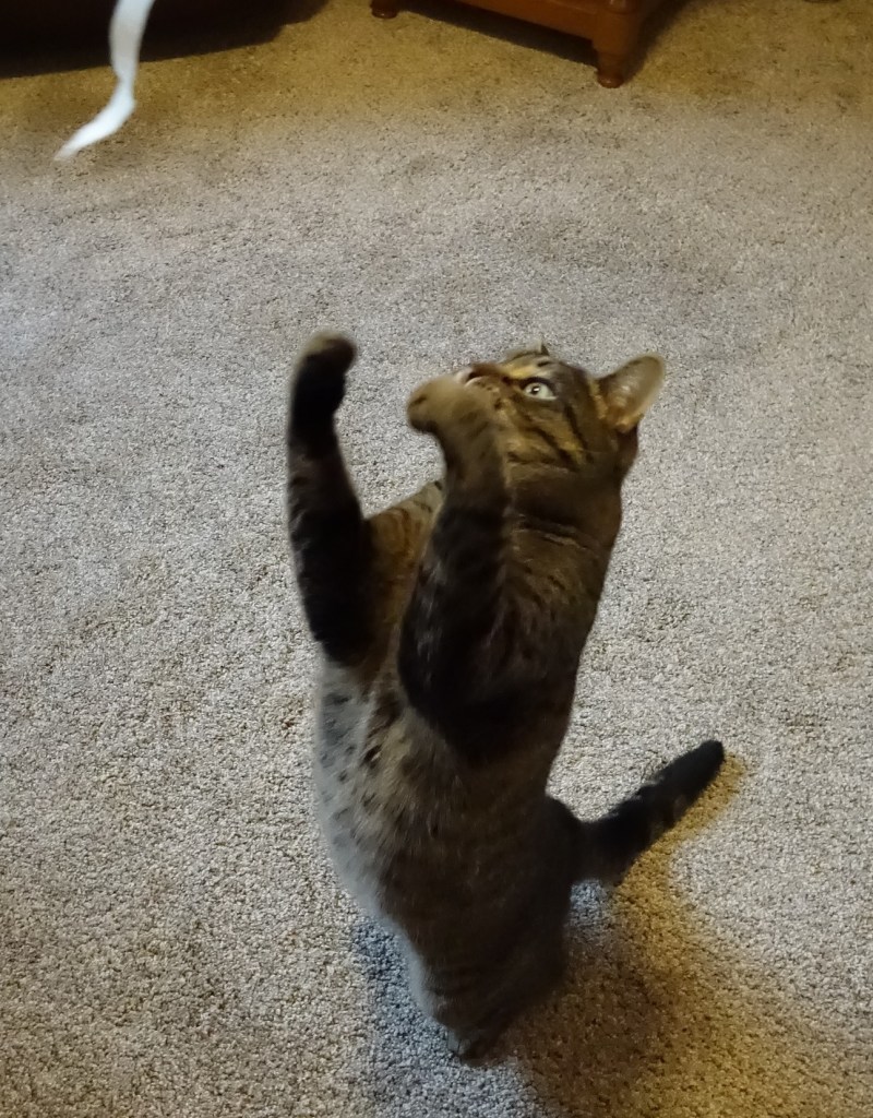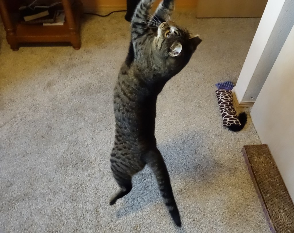 Predator playtime paired with cat yoga! Those POSES! Pardon the continuing alliteration but you truly have a photogenic feline.