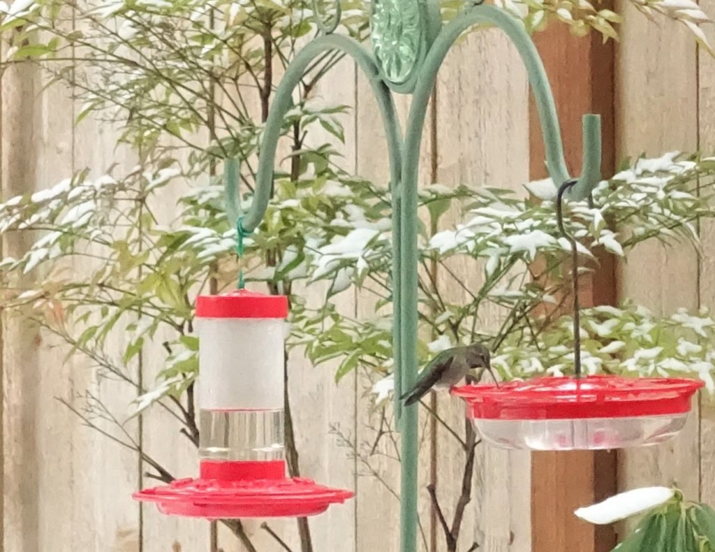 Yes, we got it and I’m happy! Still falling heavily with quite a bit of accumulation so far. I felt bad when I saw the hummingbirds this morning and the feeders frozen up! I had to quickly make up more nectar and get it out there. I’ll do better tonight. 🙂