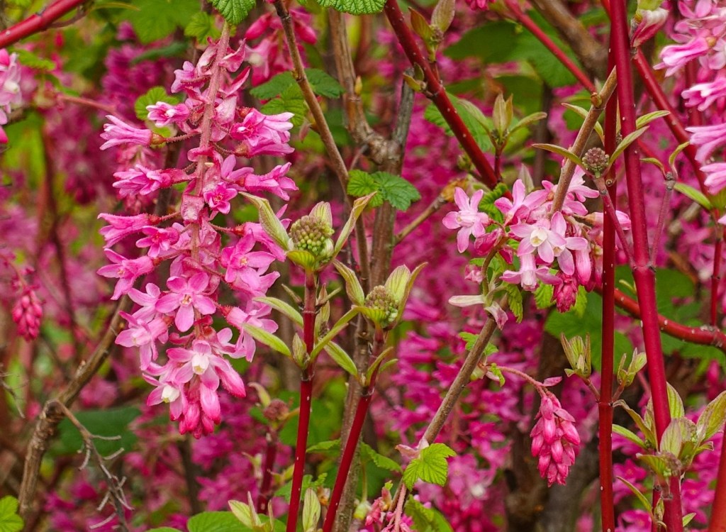 A flowering currant – looking quite like a lilac don’t you think? – I love that both the flowers and stems are rosy red. I think I’ll get one for my garden.