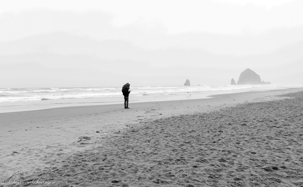 I don’t take many pictures in black and white but my favorites are from the Oregon Coast. A few years ago we took a trip down the coast in January, and stopped at Ecola State Park just north of Cannon Beach. The weather was windy and rainy but I’d never seen this view before and was determined to get some pictures anyway. I didn’t shoot them in black and white, these were the stormy conditions at the time!