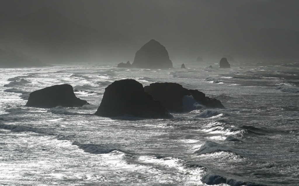 Oh what gorgeous black and whites from Canon Beach area. The fog really adds to the atmosphere. Yaquina light is perfect too! 😀