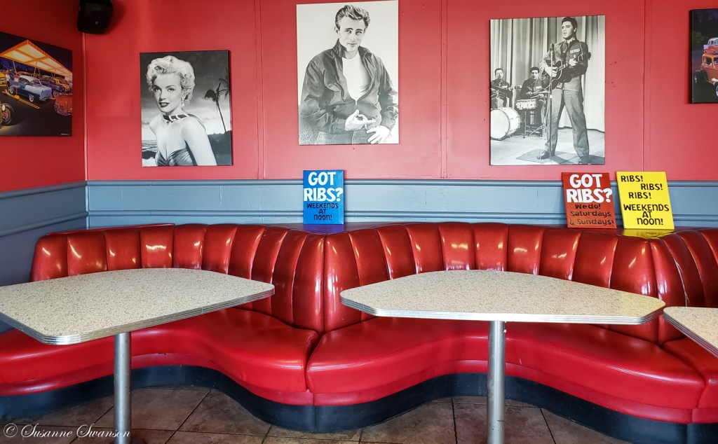 For lunch we went to Wally’s Drive-In in Buckley where the burgers were delivered to our truck fifties style. We could have sat inside and though the burgers were great maybe we should have ‘got ribs?’