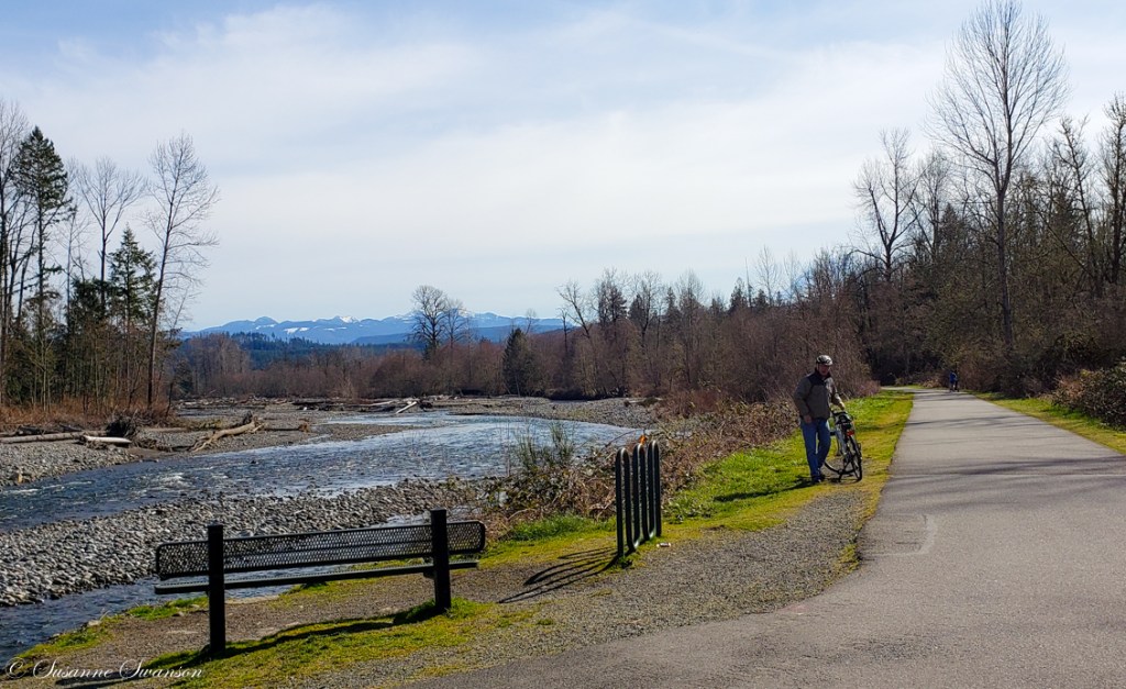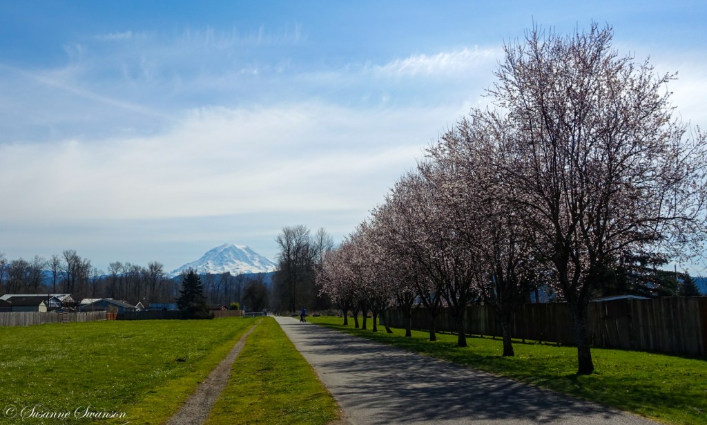 We found one on a recent sunny day – the Foothills Trail – a 21 mile paved trail built on top of an old railroad bed. We started our ride in Orting – a small town with a big mountain – and headed to South Prairie on the most scenic section of the trail.