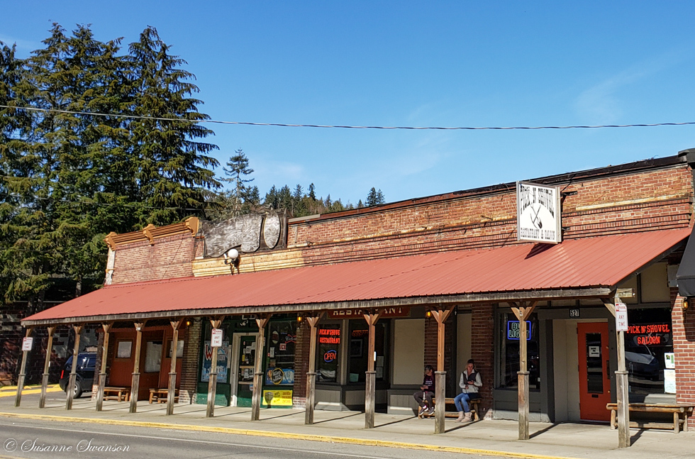 We rode the 7.5 miles to South Prairie before returning to Orting, 15 miles roundtrip – not bad for the first trip of the year! By then we were hungry and went looking for lunch in Wilkeson, a short drive up the road.