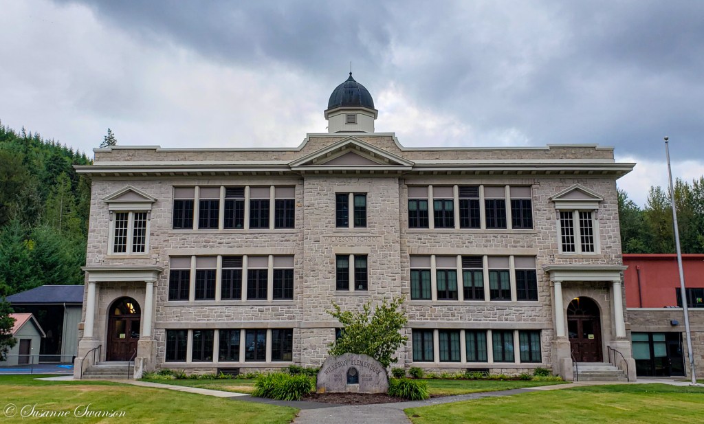 We also didn’t stop by the school; built in 1912 from sandstone, it’s the oldest still operating school in the state. Wilkeson sandstone also provided the material for the Capitol Building in Olympia.