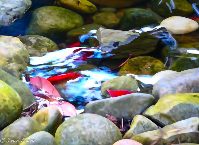 Earlier in the day I’d gone outside to take pictures of my backyard stream using long exposures. My Sony RX10 has some cool functions so I also used one that turns the ordinary into a watercolor.