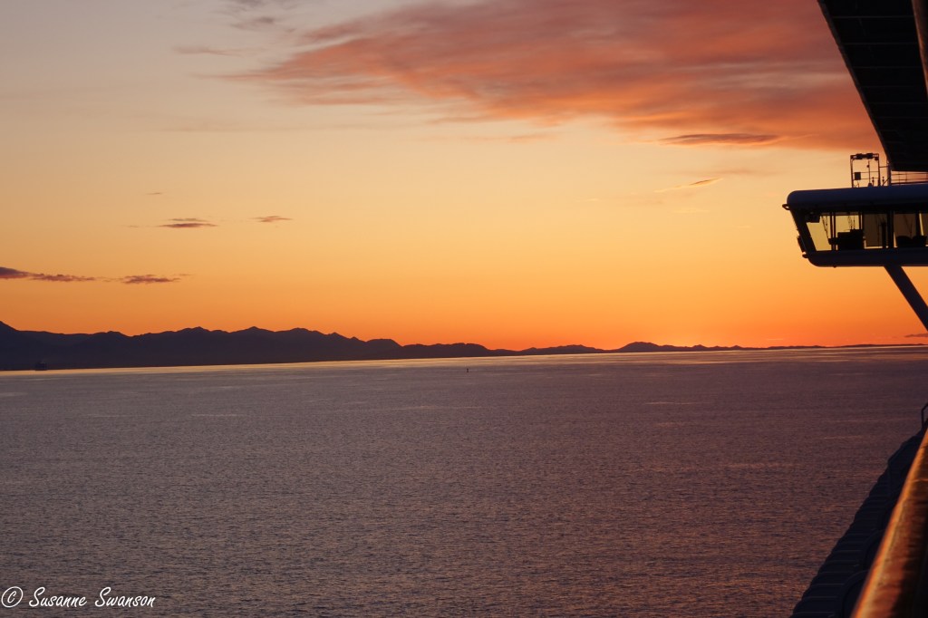 Fortunately for us the rain stayed south and was short lived. We left Seattle high and dry, enjoying a perfect sunset later at sea.