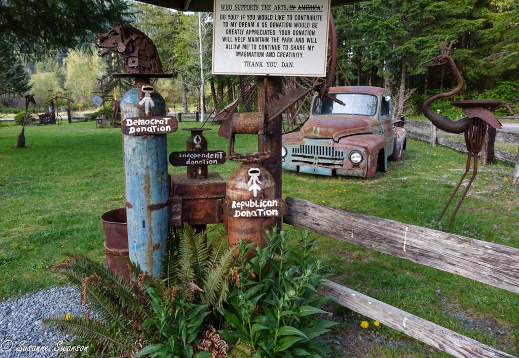 Not far from the Longmire entrance to Mt. Rainier National Park you’ll pass the Recycled Spirits of Iron Sculpture Park. Don’t. Be sure and stop to wander the grounds among the whimsical sculptures, the creation of Dan Klennert. He shares his wonderful creations with everyone for free, though donations are welcomed.