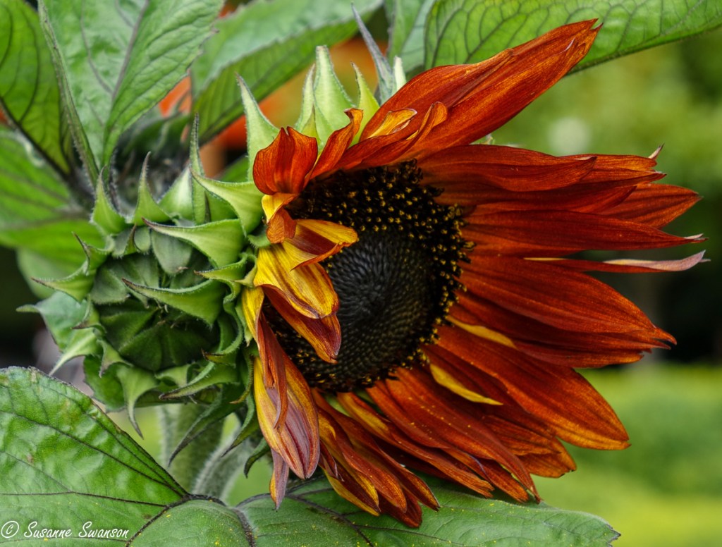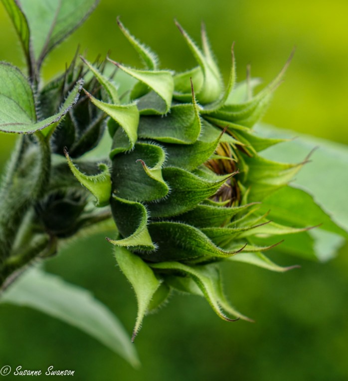Oh, I adore the geometry of opening sunflower buds, Susanne! The reward is that gorgeous red in the last image! I used to run out in my backyard with my camera and capture the phases as you have. We had to drive up to Colville yesterday to sign some title papers and we drove past a huge sunflower field. I managed to snap a few decent images from the car! You should plant a few next year!