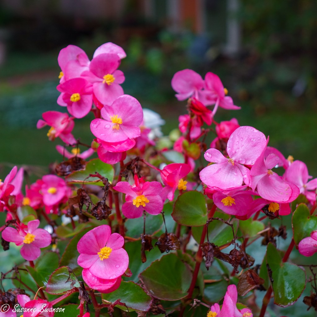 After yesterday’s rain I went for a walk in my garden and found wax begonias blooming heartily where I planted them earlier this year.