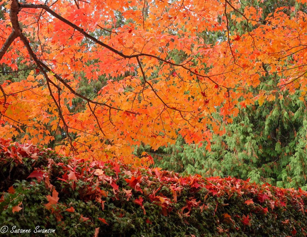 I can’t enough of Autumn colors, Susanne! Thanks for sharing. We seem to be at our peak as well. I really love how the colors pop against the evergreens. Spectacular!