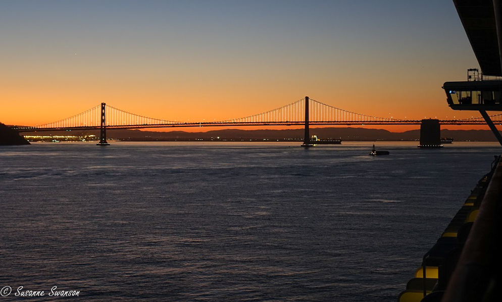After a day at sea we arrived in San Francisco, slipping stealthily under the Golden Gate bridge – or so it seemed to me. (Click on pictures in the gallery to enlarge them.)