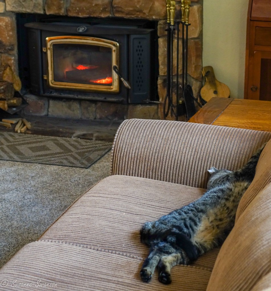 He found the best place in the house to warm up and was mostly cured of wanting out again.