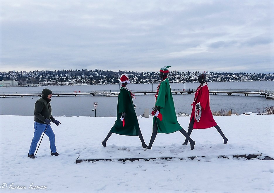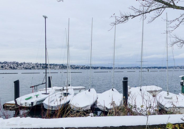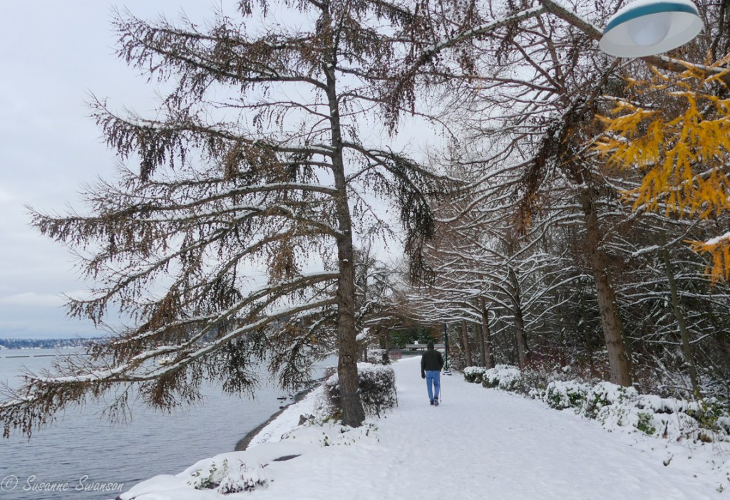 We were housebound for three days but when the roads became passable, we decided to go for a walk at Gene Coulon Park. We bundled up and trudged around the lake mostly alone.