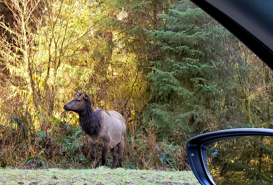 I did manage to get a picture of the largest herbivore in Olympic National Park, the Roosevelt Elk. We saw one the next day on our way to the Hoh Rainforest, standing by the side of the road, as still as a statue. She never once turned to look at us though we were only a few feet away. We finally realized she was fixated on a hiker walking up the road, so we moved on and gave her some peace.