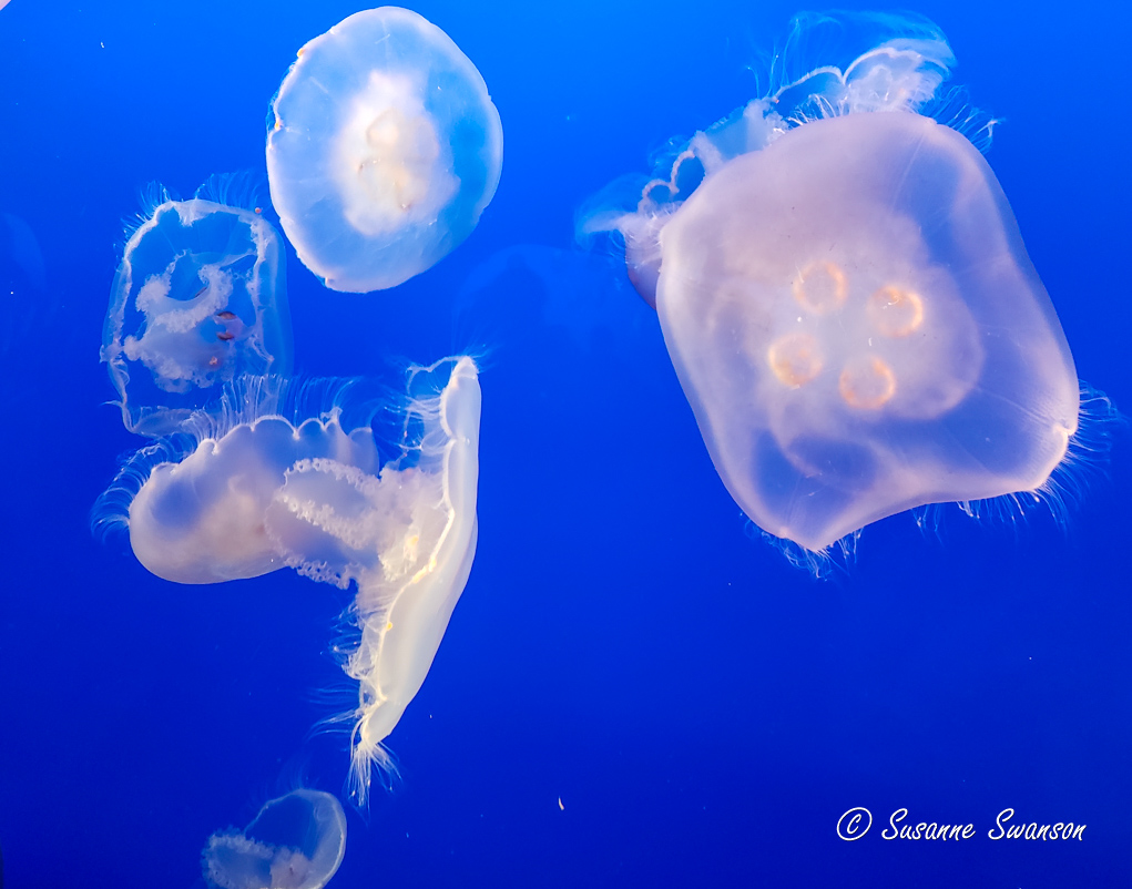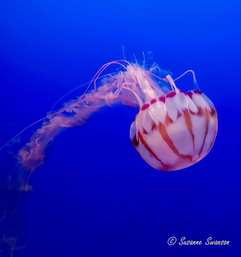 All were wonderful but I enjoyed the jellies the most. The Moon Jelly and Crystal jelly are the first two in the gallery below, followed by the Bloodybelly Comb Jelly, Sea Nettle, and Purple-Striped Jelly. (Click on pictures in the gallery to enlarge them.)