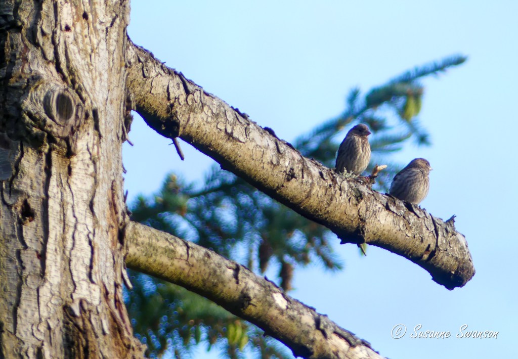Instead I found these two enjoying the snag – house finches I believe – more of my feathered friends.