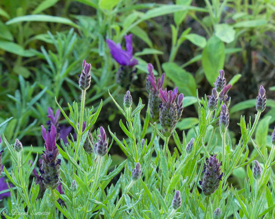 Thanks so much, Terri! It was finally warm enough just to sit outside and linger! The one with the bee inside is catmint, that Benji is also munching in a later picture. The deep purple is a variety of lavender. The pale blue flower is new to me this year, borage, an herb. 🙂
