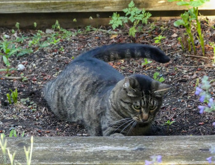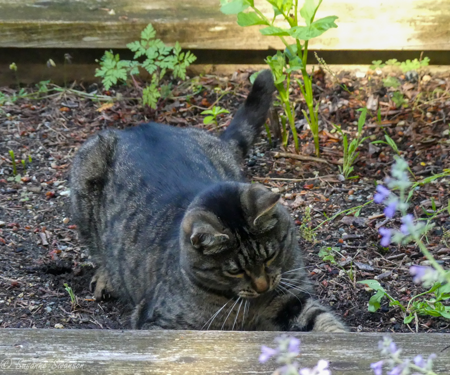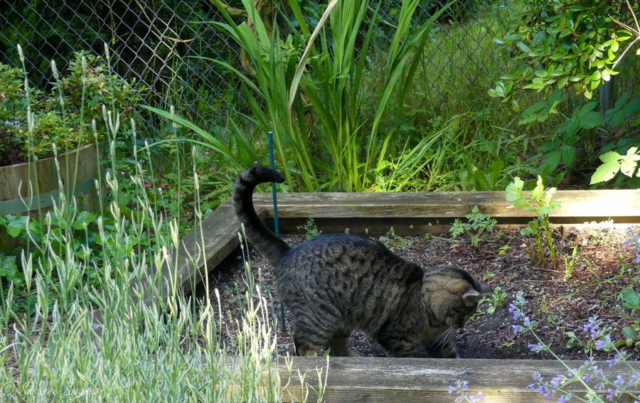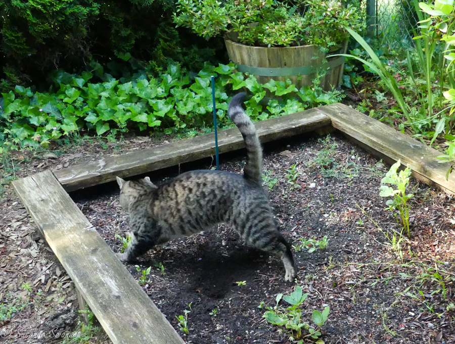 currently, a stray kitty (who is unfortunately very pregnant) has been doing a number on my one raised bed, using it as a litter box. i have a vet appointment for her but not for more than a week, so I may have kittens too.