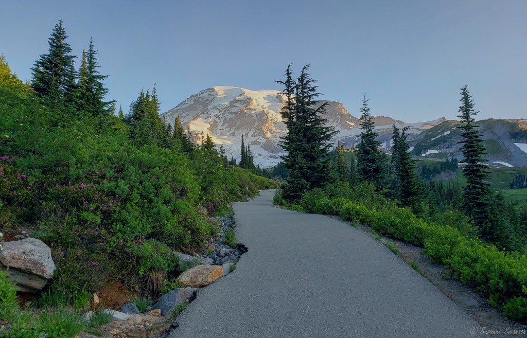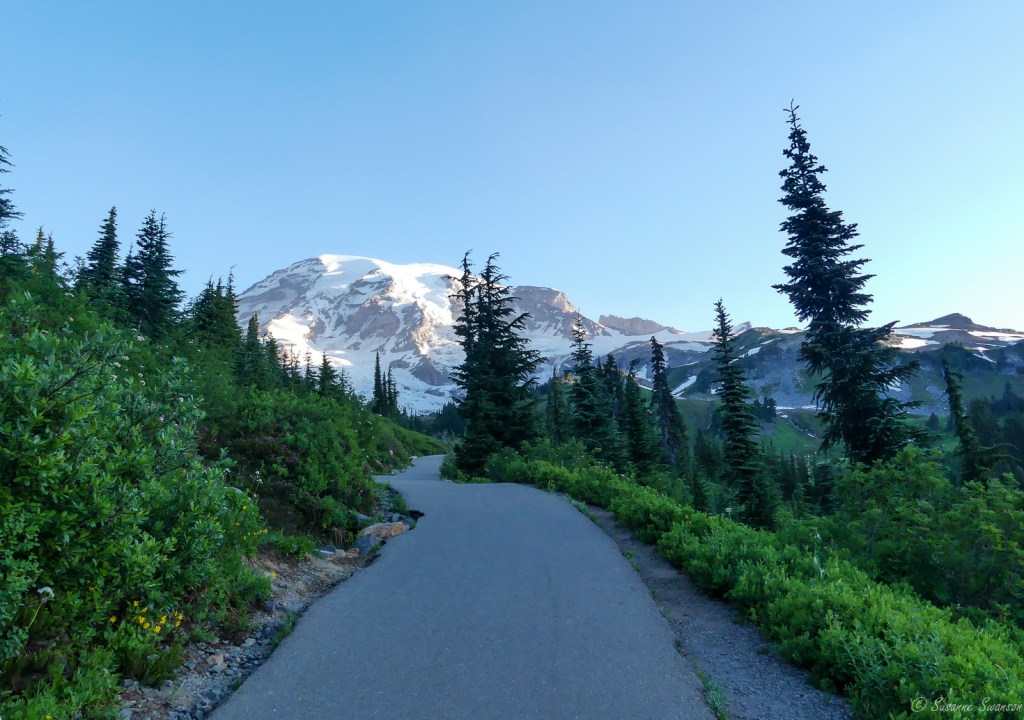 I’m glad you at least got a nice dinner at the Inn if no views of the mountain! I was thrilled to see Mt Ranier glow under the morning light and at sunset the night before. And happy to be on the trail to Myrtle Falls alone. But I was disappointed about dinner, especially as we’d skipped lunch that day and only had snacks on the trail. (The restaurant we planned to stop at earlier for lunch was closed.) Oh well, if I had to choose one or the other, I’d choose blues skies and sunshine over the mountain!