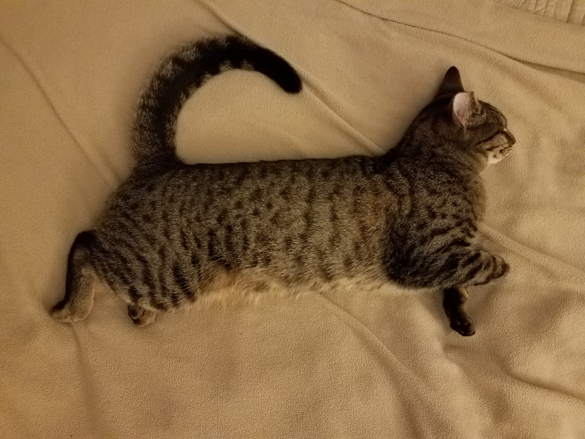 fly cat! I currently have 5 classic tabbies with the swirls on the sides, two orange and three brown (they are a foster family), 2 mackerel brown tabblies like Benji, 3 white and mackerel browntabbies.