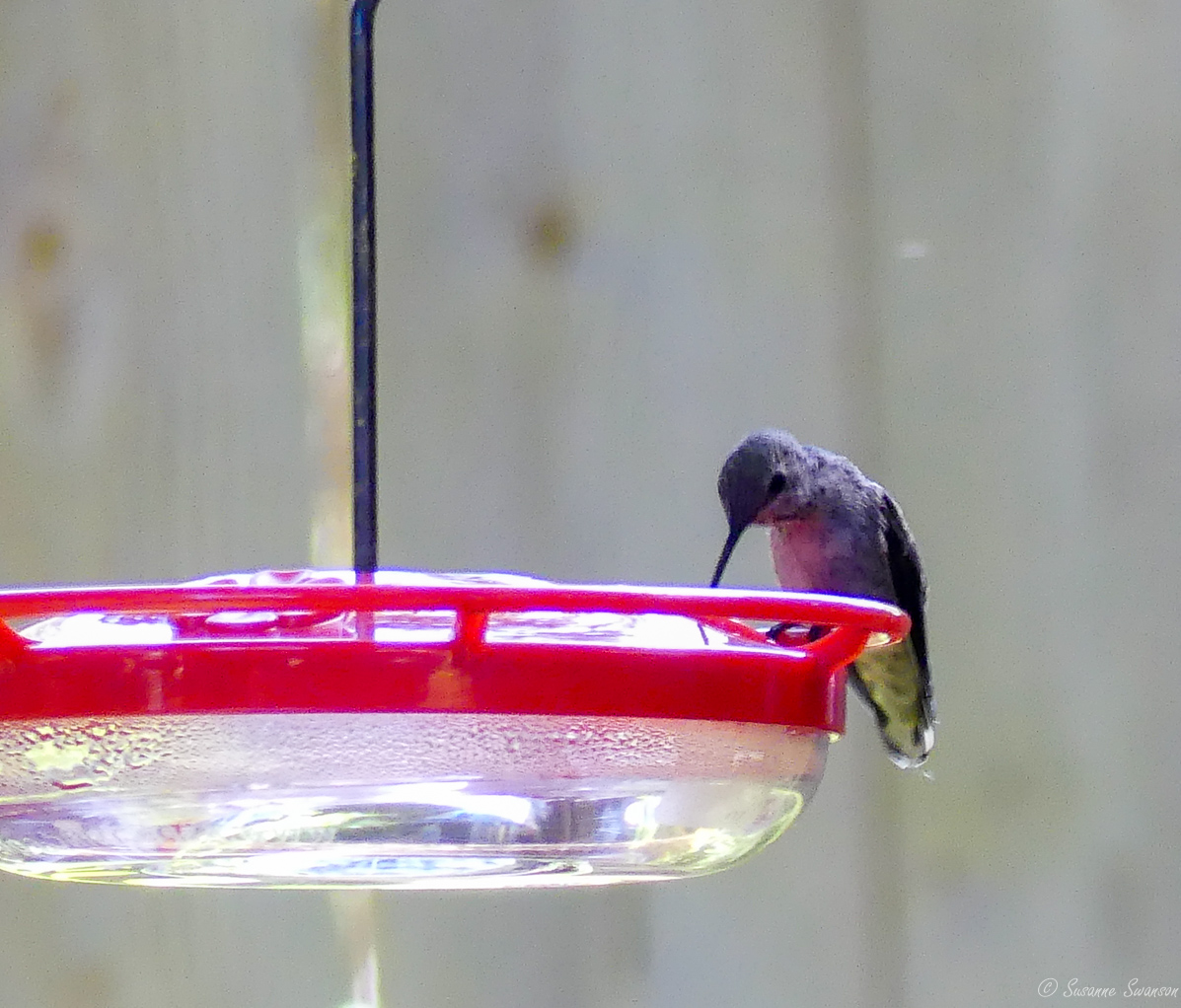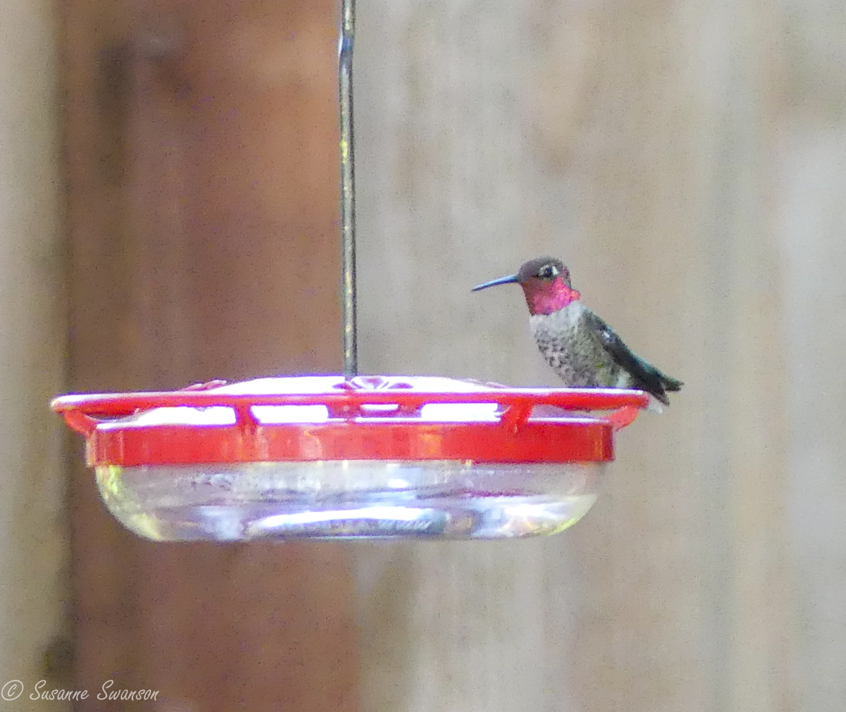 Your backyard looks amazing, Susanne! At my former Sacramento home, the backyard was small enough to stock the birds on a regular basis. We had year-round Annas, too, but too cold here although there have been reports of hummers hanging around. We don’t have the trees yet, but you’ve given me a good idea for attaching some cute houses to my she-shed. We get those violet-green swallows in early spring! Beautiful shots of the hummer!