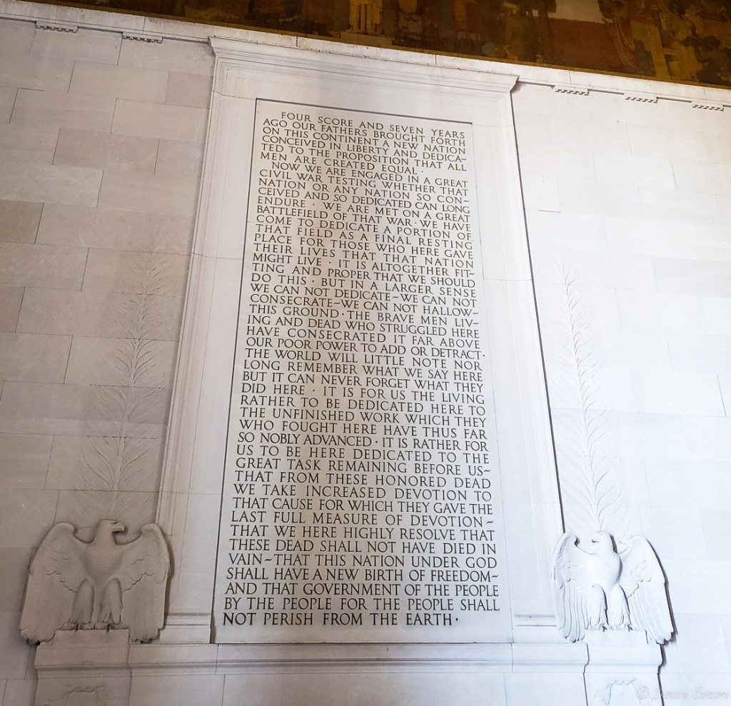 “Beneath these words, the 16th president of the United States sits immortalized in marble as an enduring symbol of unity, strength, and wisdom. Here a grateful nation honors a martyred president who guided the country through civil war and freed 4 million enslaved persons.” National Park Service website