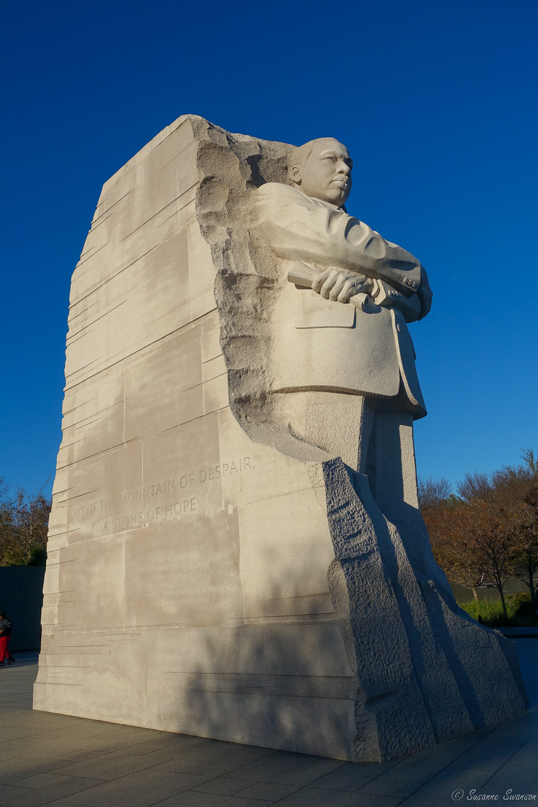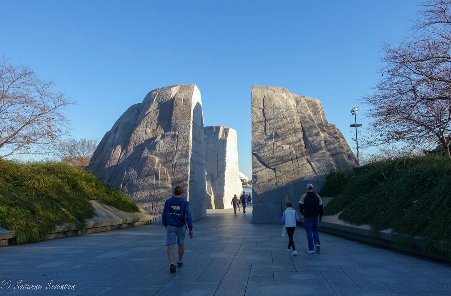 Well your trip and the SS theme were good timing for you to participate, Susanne! I love your shots from the airplane(?) to see the mall from the air. I was there in October 2008 for a few days in Baltimore to present for a recreation and parks conference–I took the train to DC on one day and rode around on the Red, White and Blue bus system. I got to see WA memorial but I didn’t have enough time to see the Lincoln. I did see the Smithsonian complex, Arlington Nat’l Cemetery, the Tomb of the Unknown Soldier, and the Kennedy eternal flame. I also had lunch within spitting distance of the capitol complex. Thanks for the tour and sharing the images of MLK and FDR memorials! I look forward to seeing more of yours.
