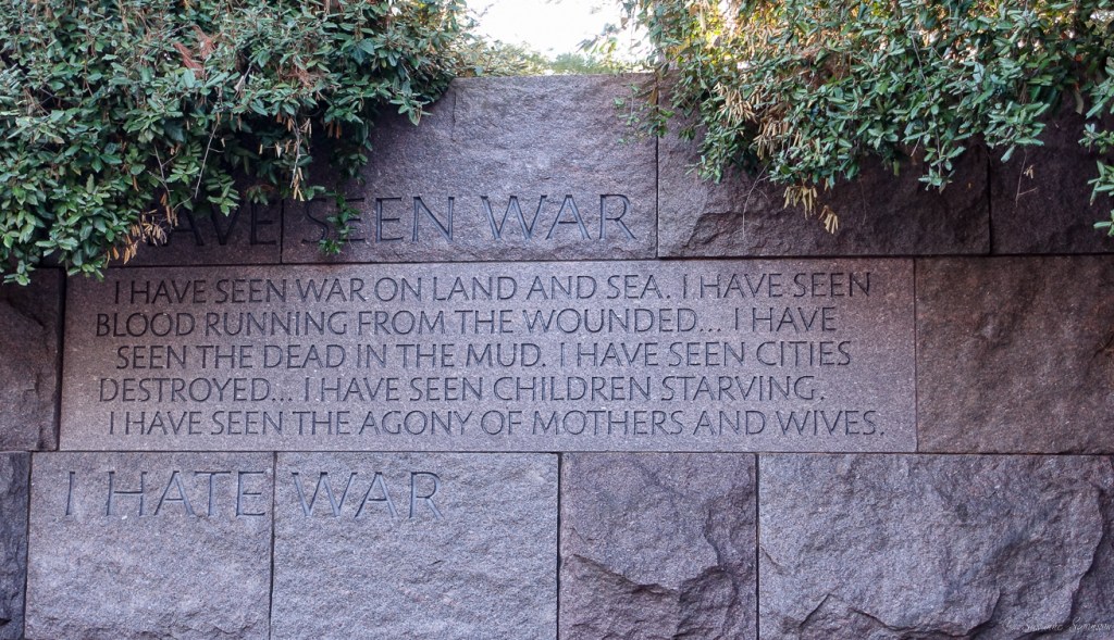 I can’t tell you how many times I had tears in my eyes as I read the many inscriptions at the memorials and when considering the thousands of young men who gave their lives for our country. It was powerful, sobering, and inspiring. Yes, war is sometimes necessary, but that doesn’t change the harsh reality of its ugliness; the words below are from FDR.