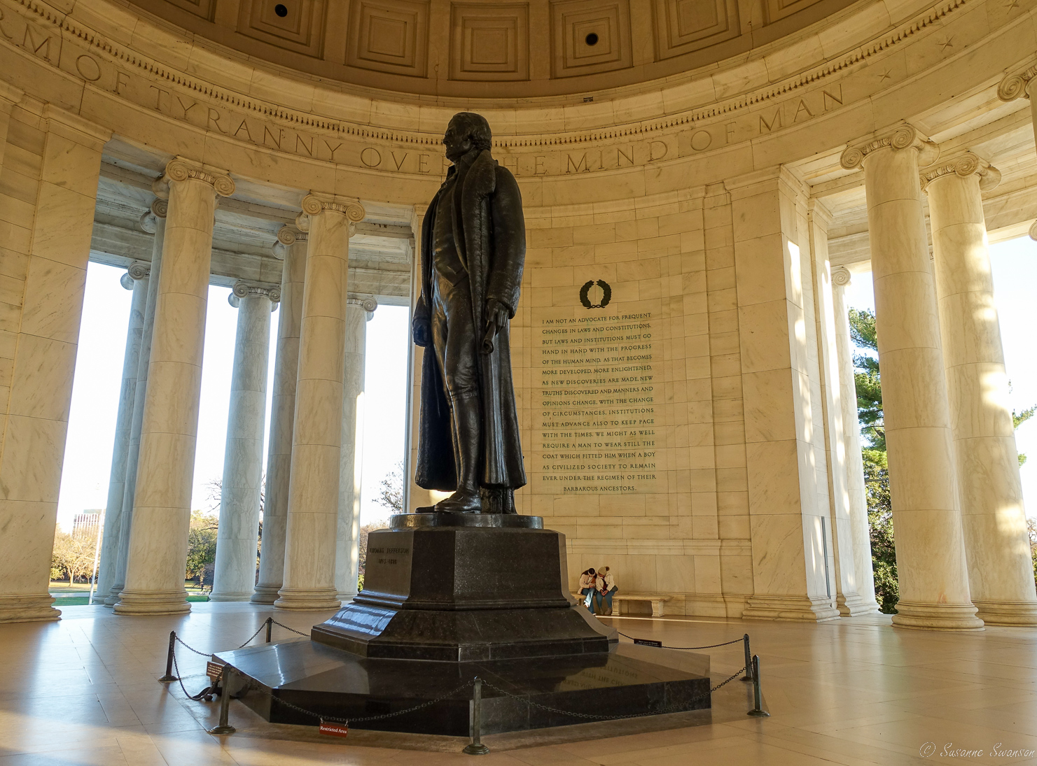 Thomas Jefferson, our third President, was also a political philosopher, scientist, diplomat, horticulturist and inventor. The memorial was dedicated on April 13, 1943, on the 200th anniversary of his birth. Jefferson had this inscribed on his own tombstone, “Author of the Declaration of American Independence, of the Statute of Virginia for religious freedom, and Father of the University of Virginia.”
