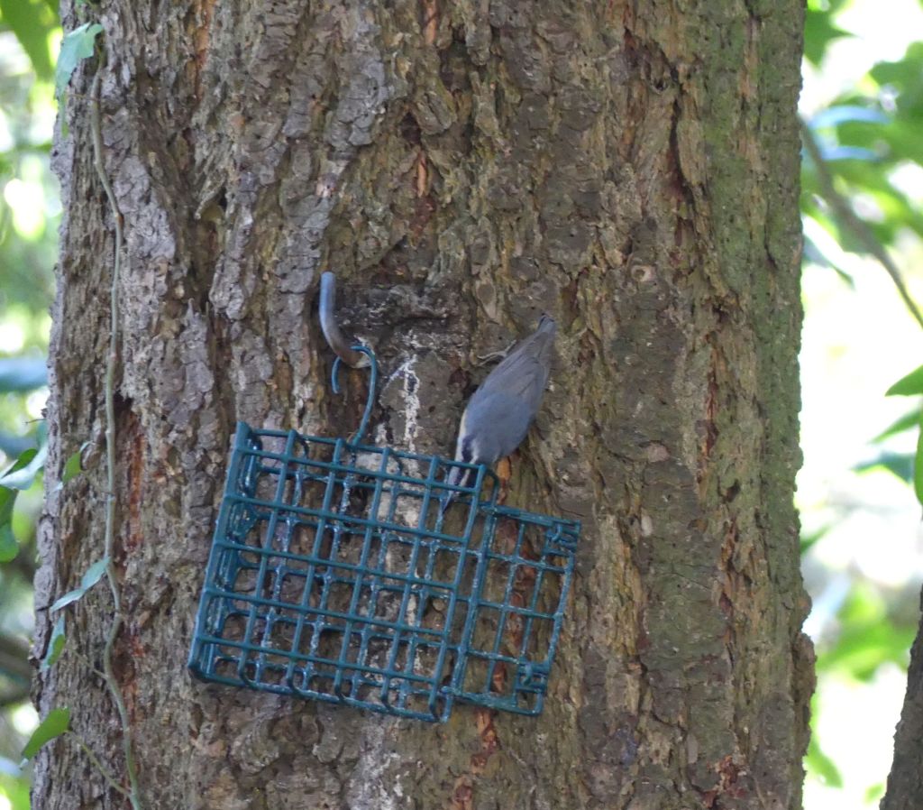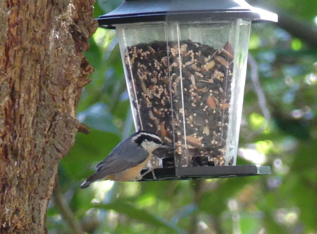 I did, and there wasn’t. I quickly refilled the feeder and the nuthatch appeared first to eat.