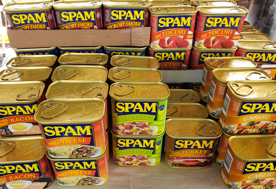 It’s giving this Spam a bad name! I found these at the Aloha Bowl Swap Meet in Oahu. Hawaiians love their spam, though I do not. ๐