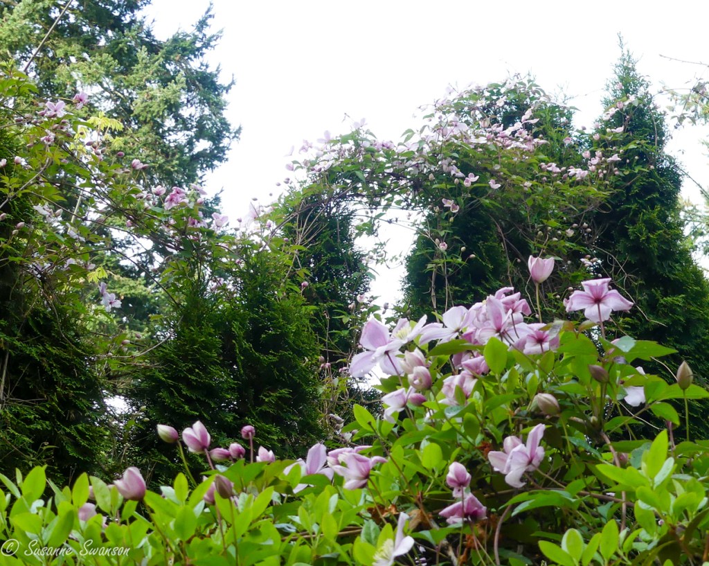 This Montana Clematis has been so resilient, climbing higher each year. I wonder if it would do well in your world.