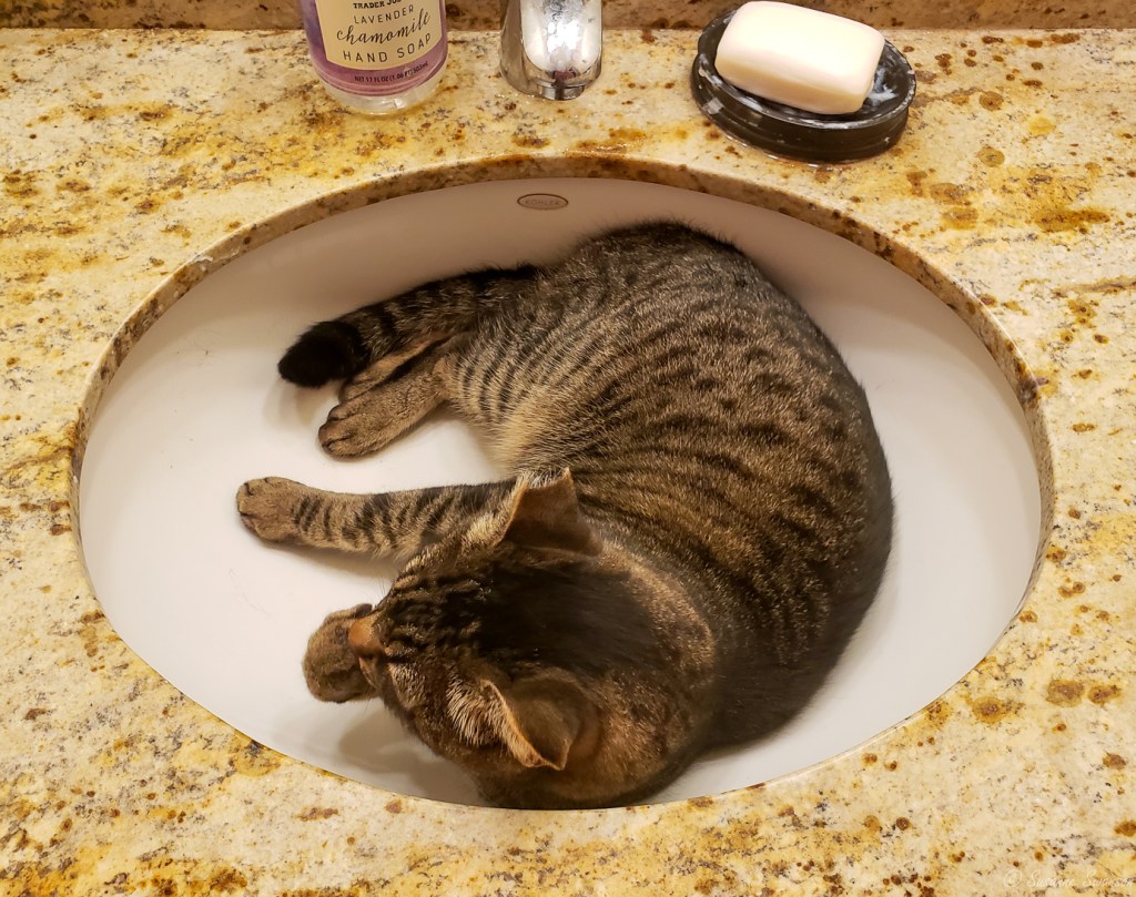 Aw thanks so much, Terri! Benji loves fitting into sinks, boxes, bags, closets, you name it, if it fits, he sits! (And even if it doesn’t! π