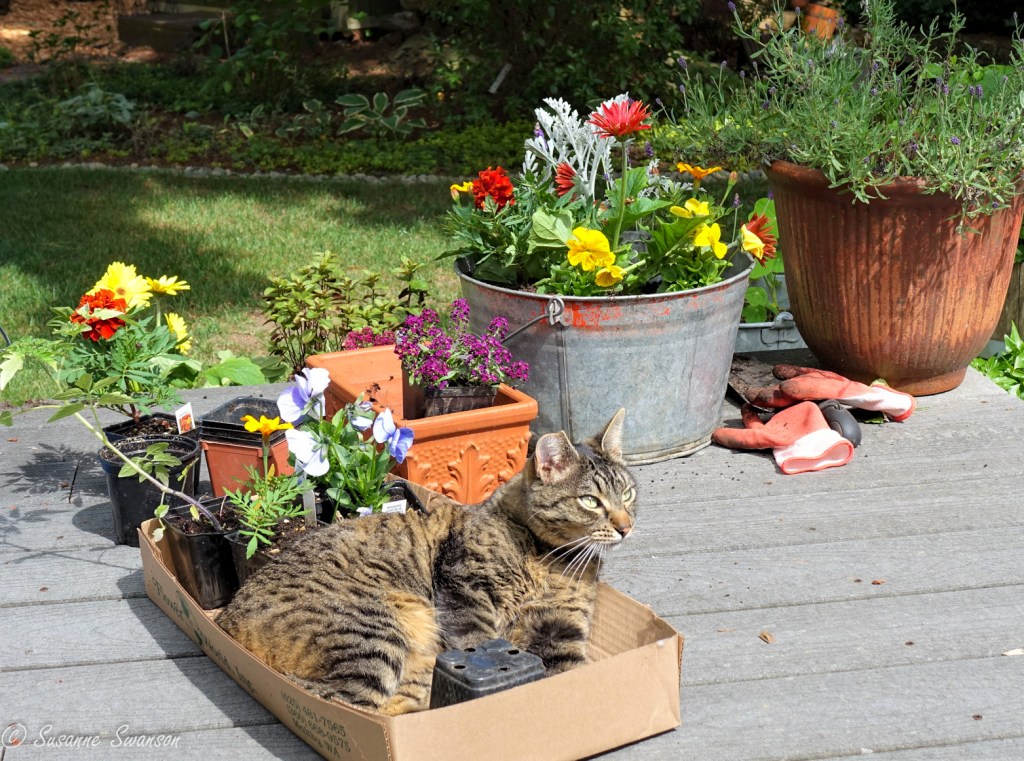 Aww, Susanne, you’ve caught Benjie doing what he loves–being a cat! I love the kitchen sink and box sits–I wonder why they do that? Great captures of him doing the “surprised” cat jump/dance! Too cute!