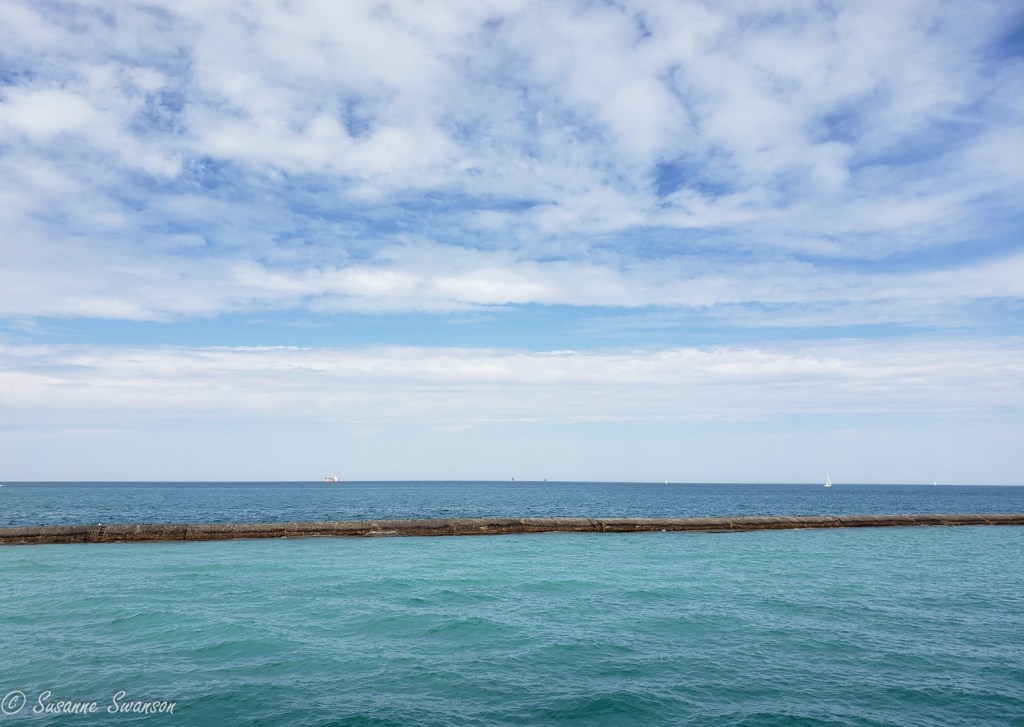 The other direction showed the vast expanse of the lake as well as the breakwater.