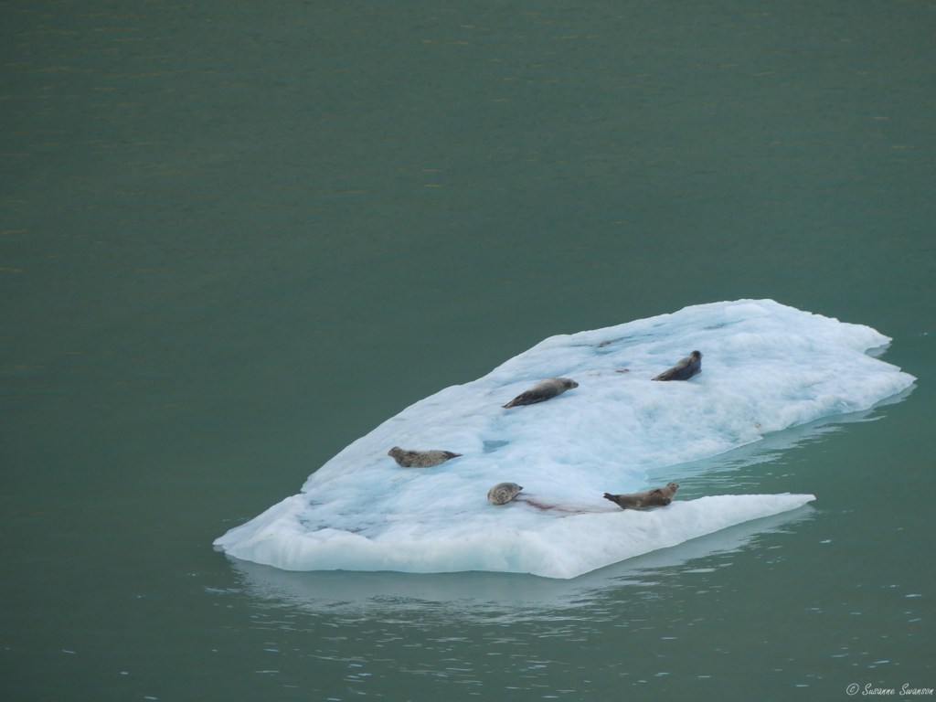 Endicott Arm is 30 miles long and 1,200 ft. deep. I was enchanted by its milky, smooth waters, turquoise colors, waterfalls, icebergs, ice floes and resting harbor seals.