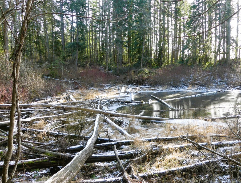 This backwater was frozen solid; it took a few tries, but we finally landed our stones and heard them bounce on the hard surface.