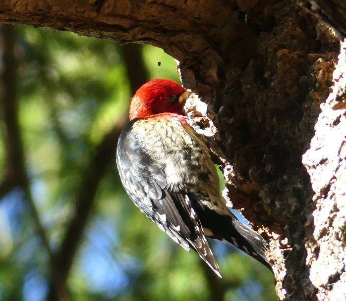 A red breasted sapsucker, I confirmed later. New to me, it’s a variety of woodpecker whose main diet is – you guessed it – sap.