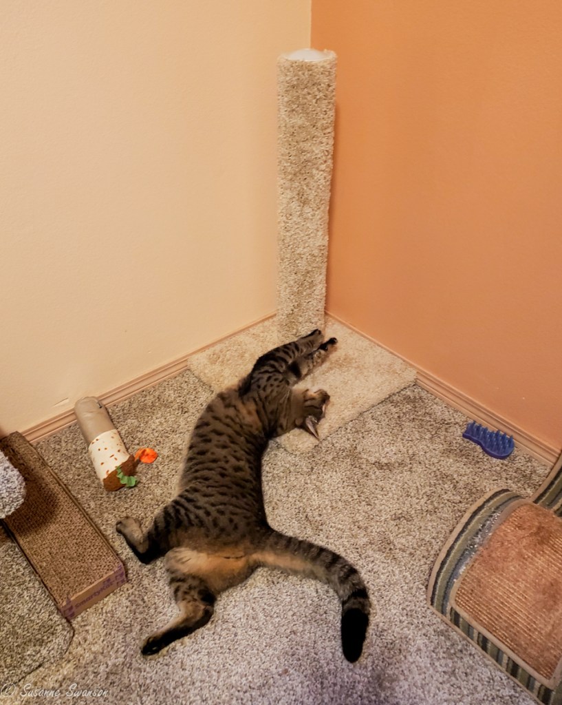 Thanks, John. He certainly did use it after I sprayed it with catnip so there is some hope! 🙂