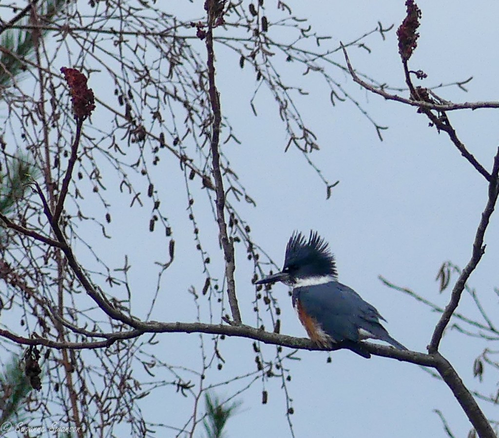 Another bird landed in a distant tree and I snapped a photo by faith; I couldn’t see him clearly, but my zoom could. It was a Kingfisher, not uncommon, but a first for me.