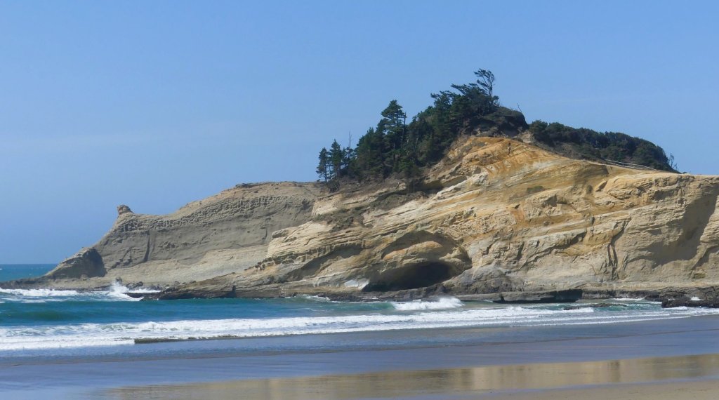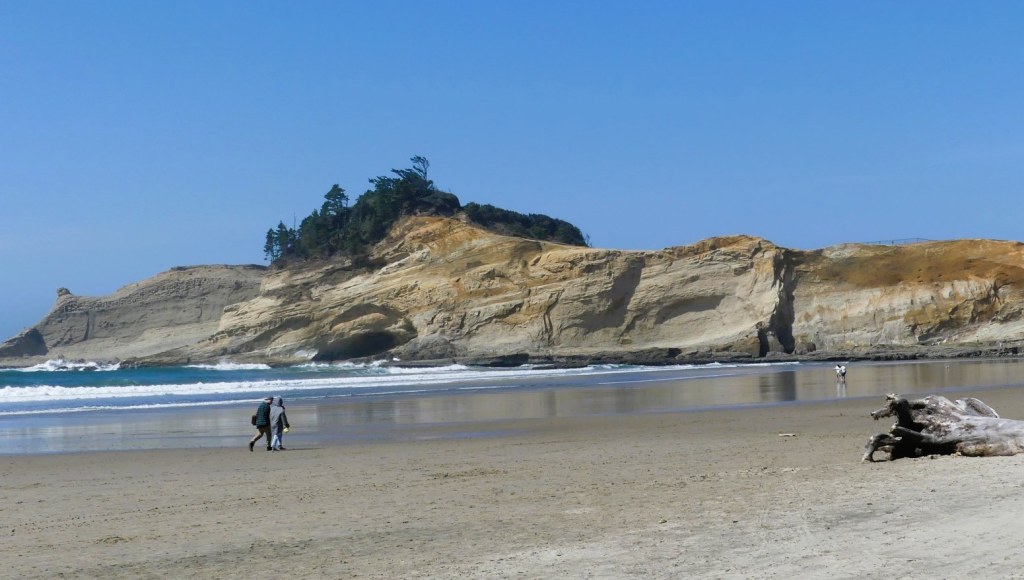 and lunch at Pacific City where we enjoyed wonderful views of Cape Kiwanda, a large beast of sandstone.
