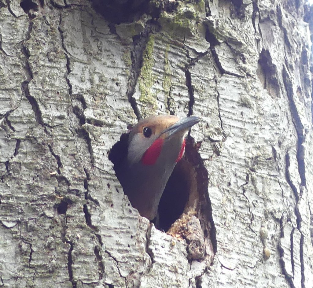 Flickers are such handsome and distinctive birds. I hope you have fun watching them raising their family there.