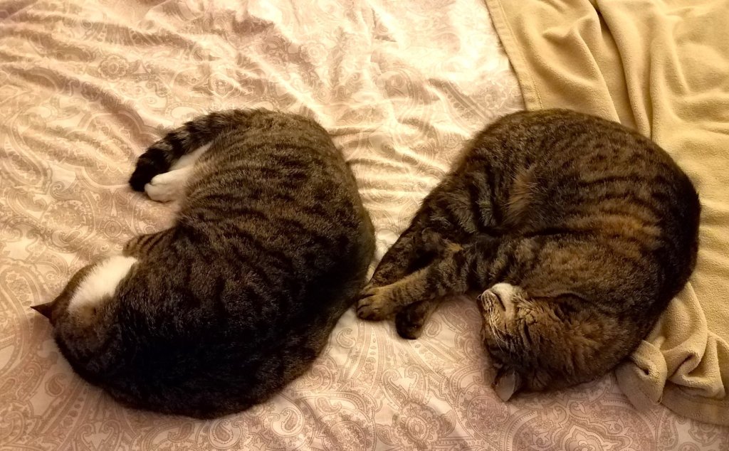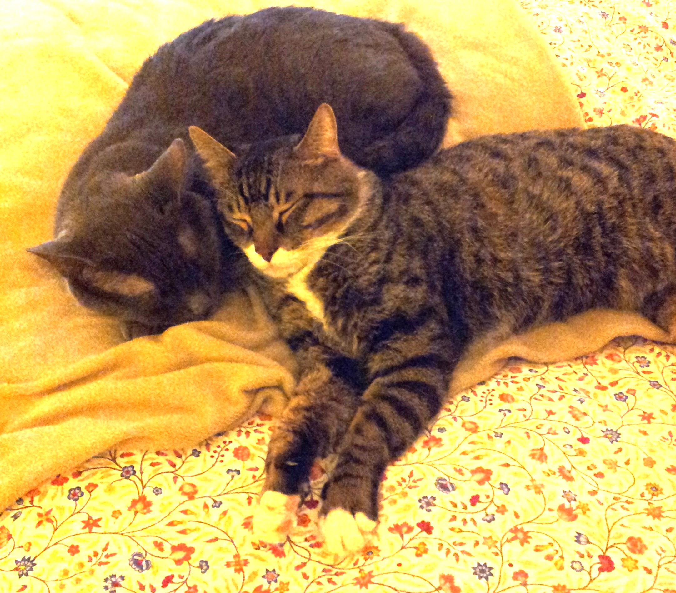 When we learned of their plight, we welcomed them into our home, and they appreciated their new lodging. If there were ever two cats more bonded than these, I have not seen them.