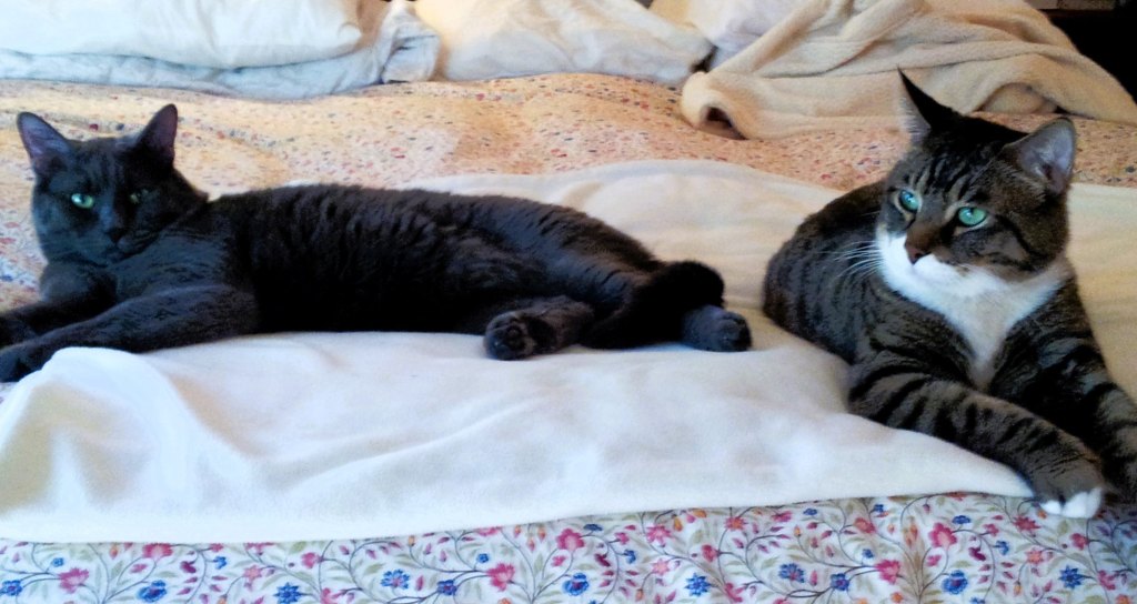 They came to us at the age of five, middle aged in cat years, from a Cat Hotel where they’d been dropped off when the owner could no longer keep them. (Yes, there are such things. Poor boys.)