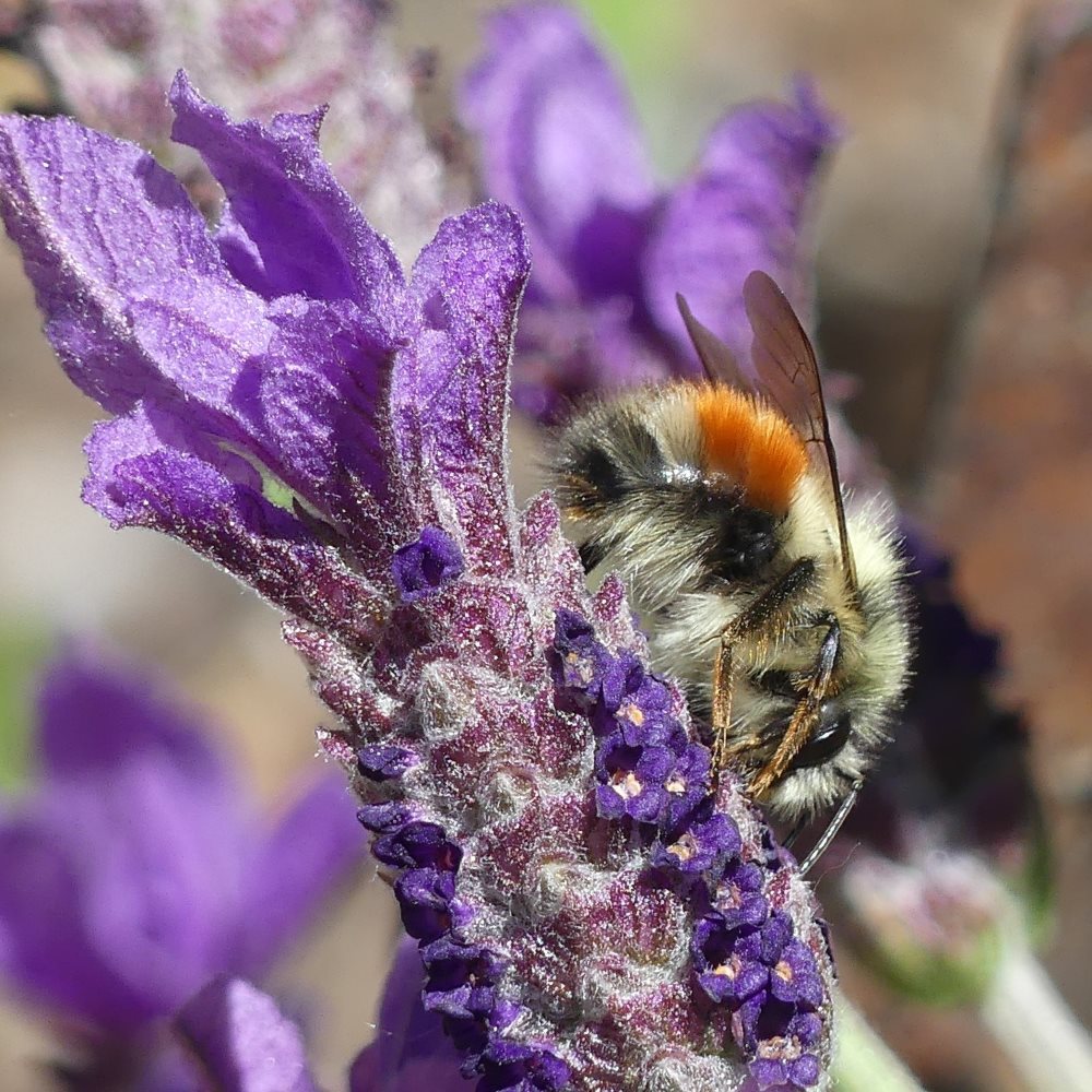 As tiny blossoms are burgeoning on the lavender, more bees are visiting, drinking in the nectar,