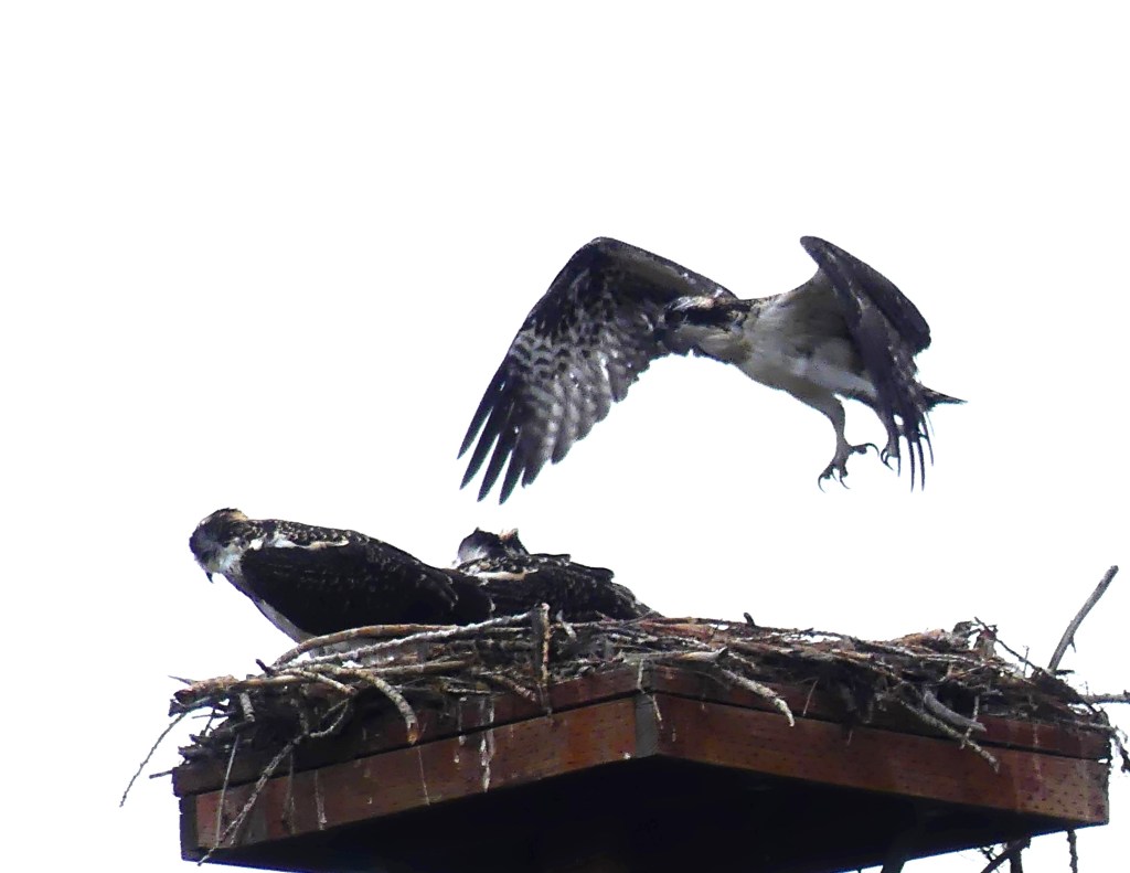 I witnessed something marvelous in Wenatchee the past few days, on a high platform above the Columbia River, (them not me,) a pair of Osprey with their young.